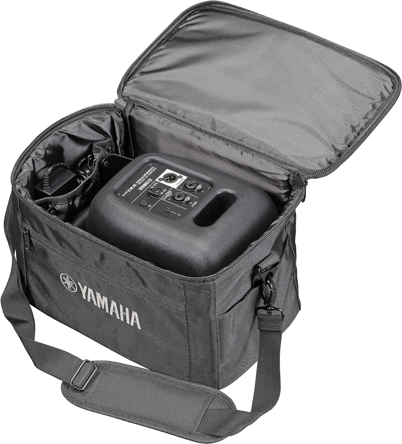 The BAG-STP100 Carry Bag from Yamaha is a convenient soft carry case designed to fit the STAGEPAS100 and STAGEPAS100BTR PA systems. The bag easily fits the entire PA system and sports an internal side pocket for accessories like cables and power supplies. The main lid flips back and features a zipper enclosure.